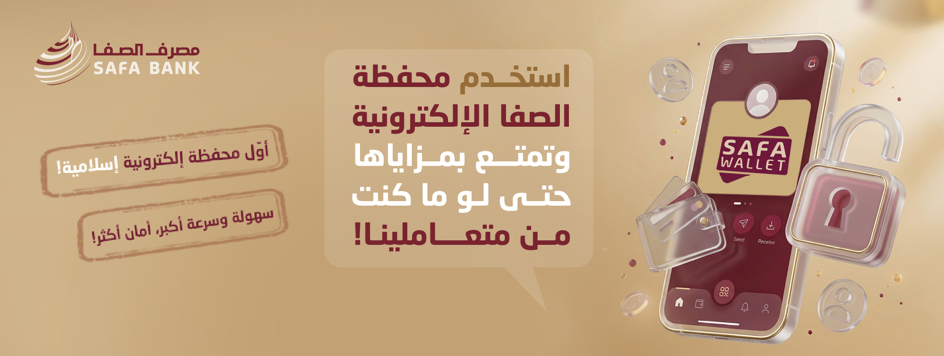 محفظة الصفا الإلكترونية هي خدمة رقمية مبتكرة متوافقة مع أحكام الشريعة الإسلامية مقدمة من مصرف الصفا ، تتيح هذه المحفظة للمتعاملين وغير المتعاملين إنشاء حساب محفظة إلكترونية لإدارة المعاملات المالية بسرعة وأمان دون الحاجة لزيارة المصرف، كما توفر مجموعة متنوعة من الخدمات الرقمية التي تلبي الاحتياجات المالية اليومية بسهولة وفعالية وأمان