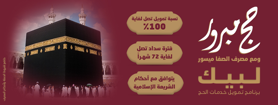 To the pilgrims of the Sacred House of Allah, Safa Bank offers you the opportunity to obtain financing to cover the costs of Hajj for this year through the "Labbayk" program. This program is compliant with Islamic Sharia and aims to facilitate the completion of the Hajj journey.